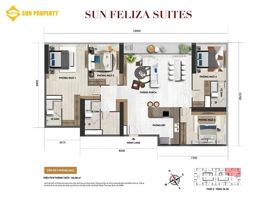Phân tích căn 2 ngủ Sun Feliza Suites